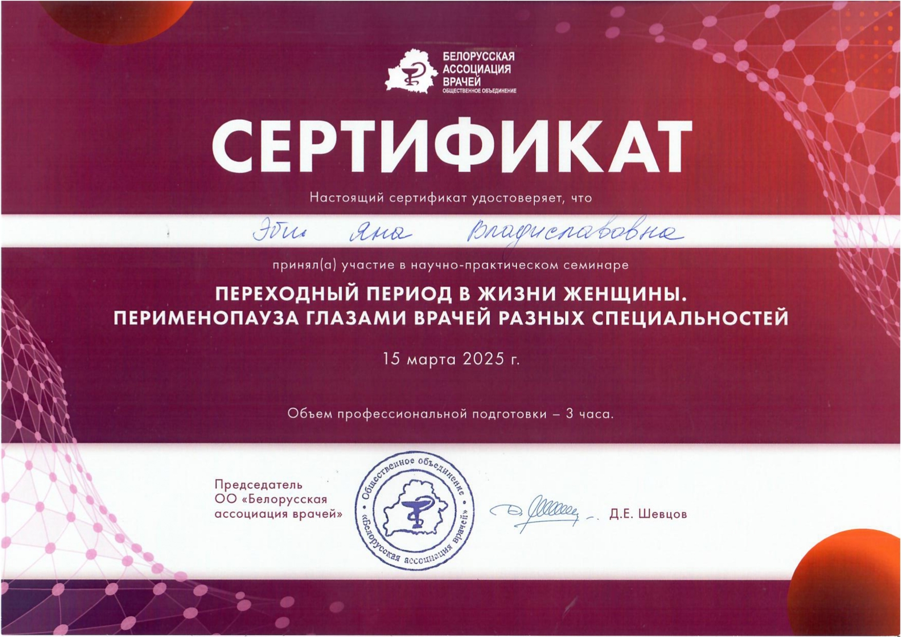 15 марта 2025 – Научно-практический семинар «Переходный период в жизни женщины. Перименопауза глазами врачей разных специальностей», ОО «Белорусская ассоциация врачей»